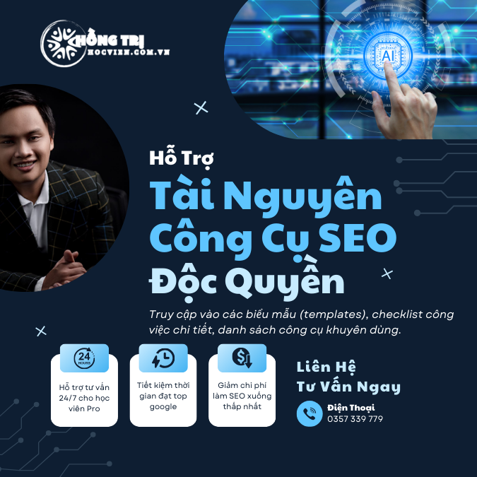 Các chuyên gia thường xây dựng bộ tài nguyên riêng dựa trên kinh nghiệm thực chiến của mình. Tham gia khóa học, Bạn có thể được cấp quyền truy cập vào các biểu mẫu (templates), checklist công việc chi tiết, danh sách công cụ khuyên dùng, hay thậm chí là các quy trình tối ưu nội bộ mà đội ngũ của anh Trị đang áp dụng. Những tài nguyên độc quyền này giúp bạn chuẩn hóa quy trình làm việc, tiết kiệm thời gian và triển khai SEO một cách bài bản, chuyên nghiệp hơn.